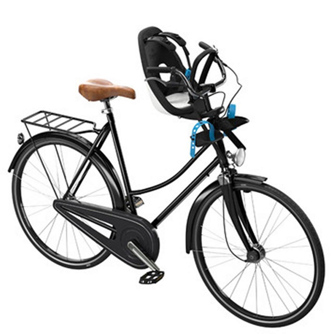 Седалката може да бъде монтирана / свалена от велосипеда много бързо, посредством универсалната скоба за монтиране на тръбата на кормилото (независимо от нейния тип).