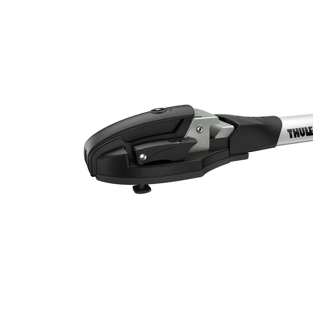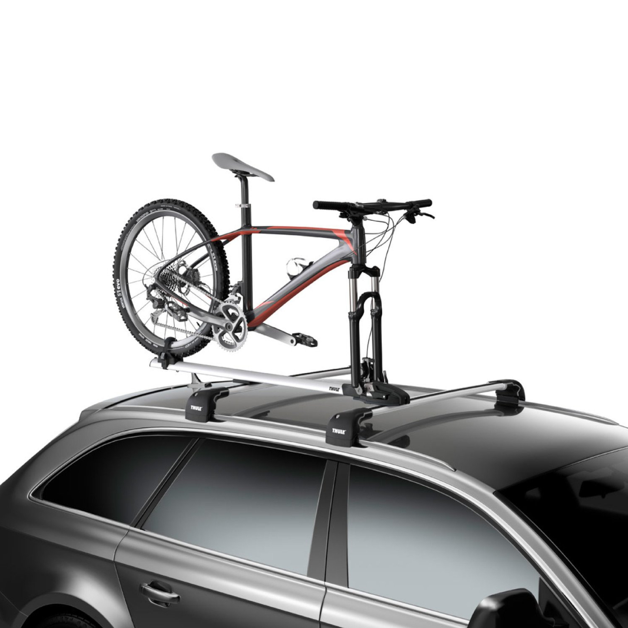 Thule ThruRide е решение за транспортиране на велосипеда върху напречната греда, с отстранено предно колело. Тази скоба е проектирана да бъде съвместима с всички диаметри на оста на колелата, без допълнителни адаптери.