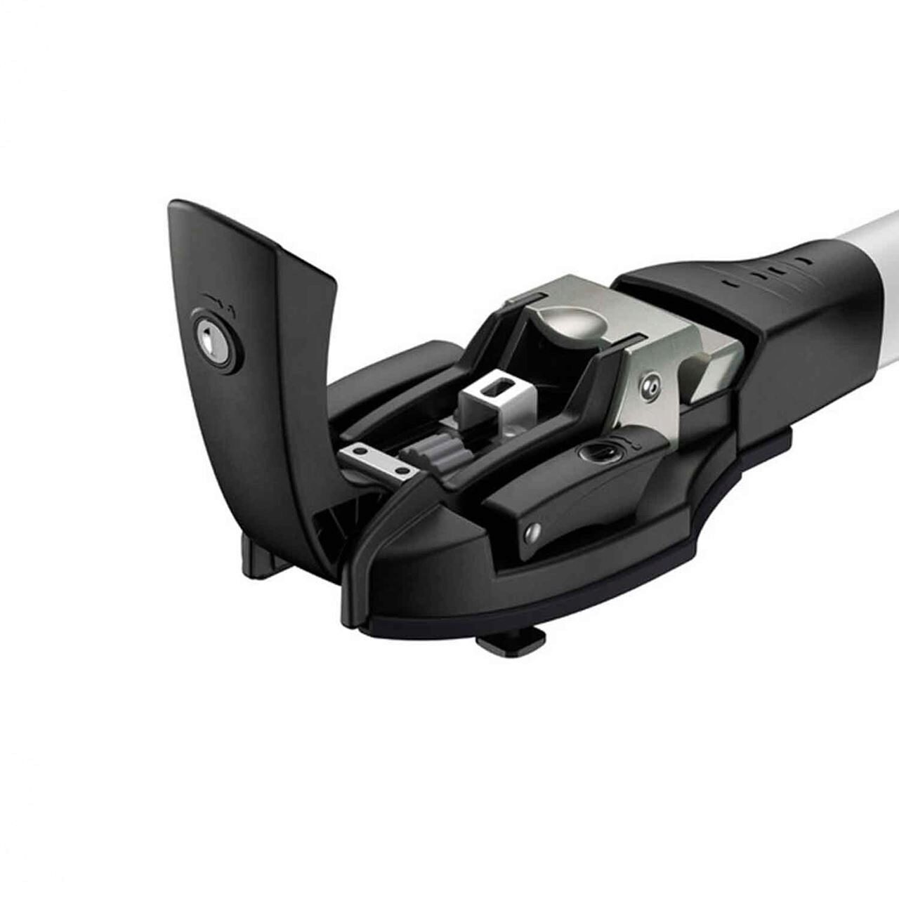 Оборудван със система против кражба с ключ, както за задържане на опората на напречната греда, така и на велосипеда на опората