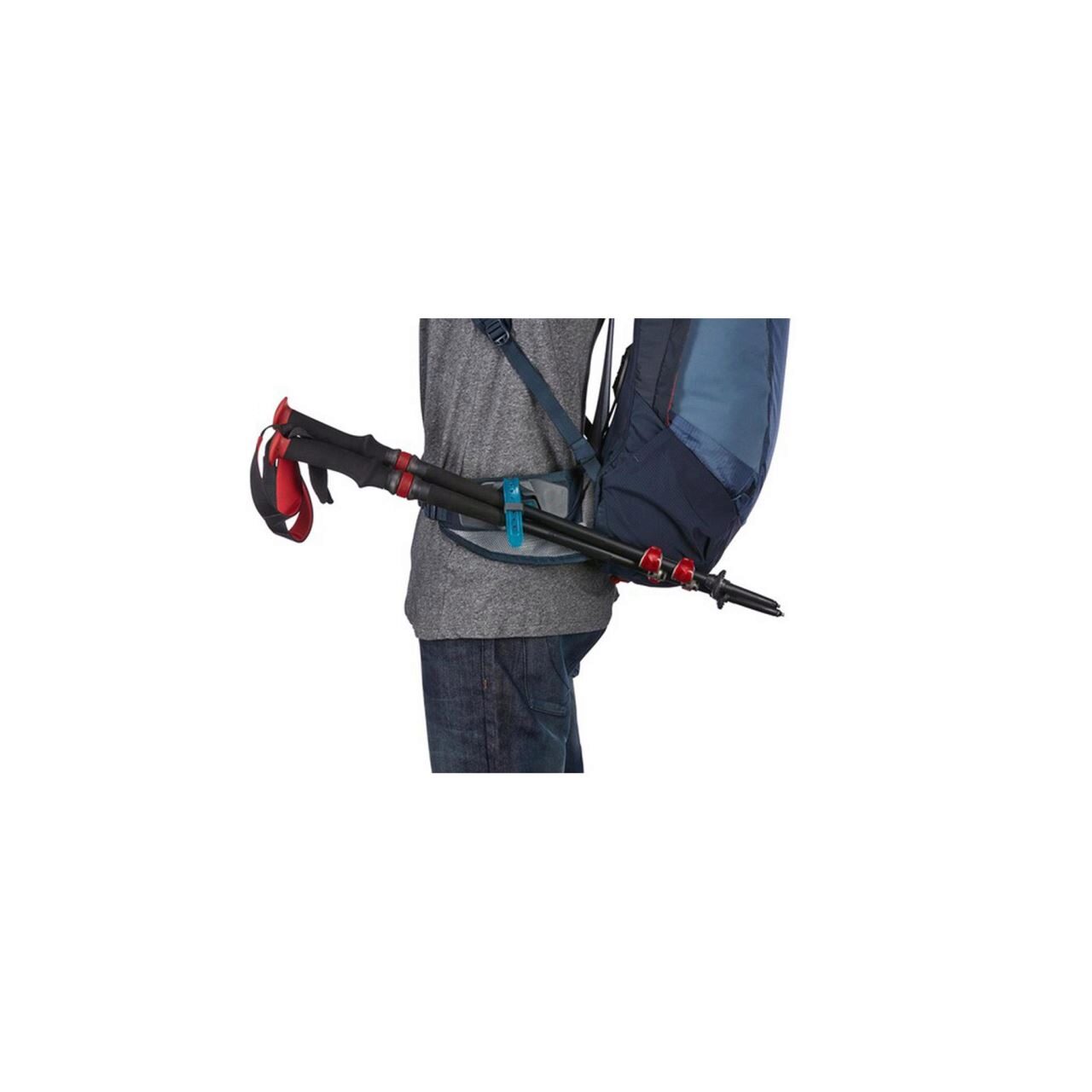 - Можете удобно да съхранявате трекинг палки на бедрото си, без да сваляте раницата, като използвате аксесоара VersaClick Pole Holder