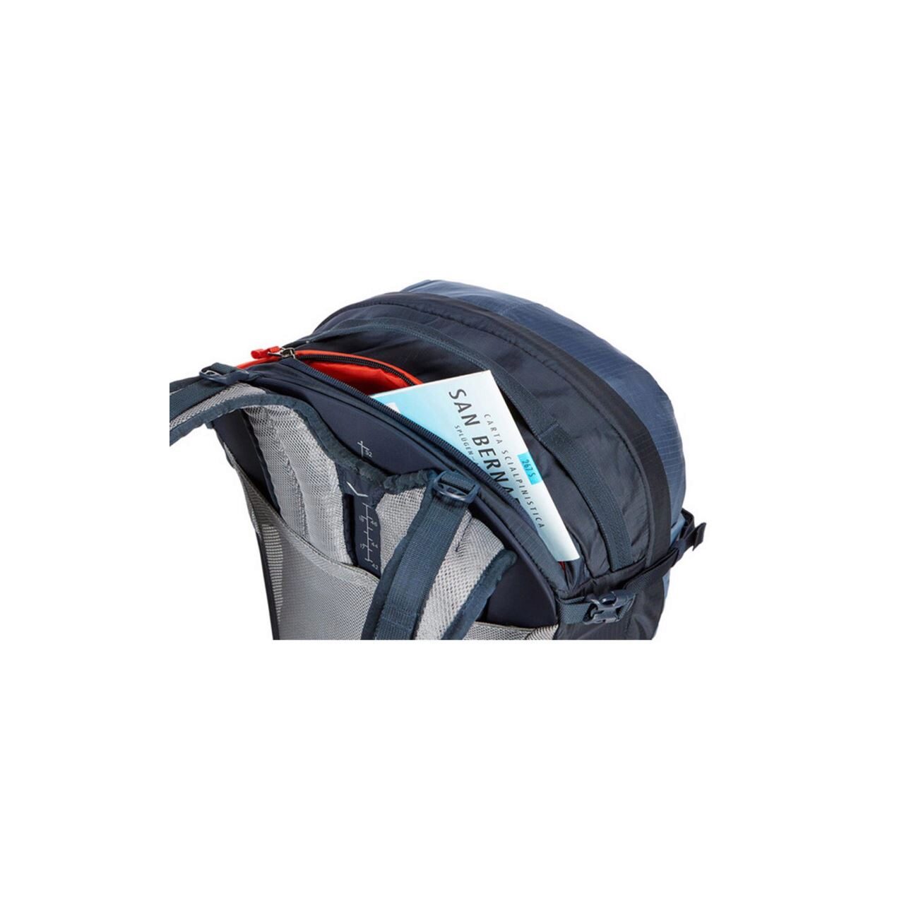 - Джобът с цип в горната част на раницата е идеален за съхранение на слънчеви очила или други малки предмети.