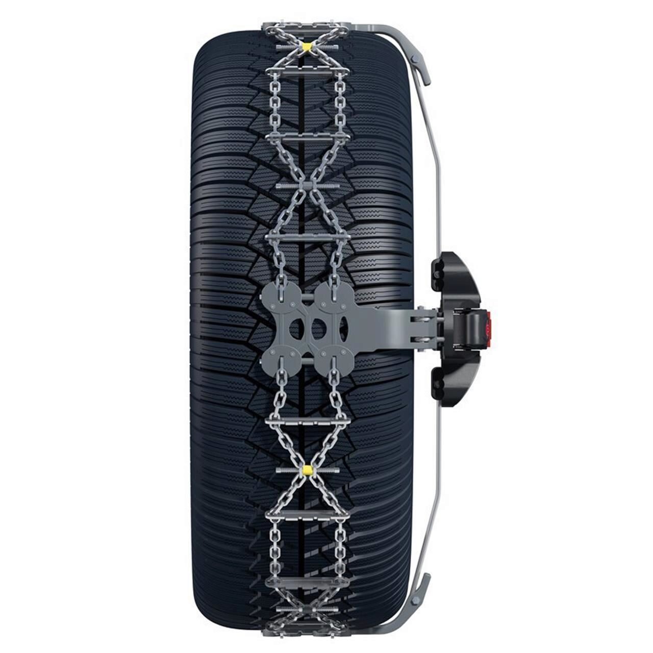 - Иновативната тресчотка, която действа като усилвател на сила, помага за лесното монтиране на веригите, а сгъваемите рамена улесняват съхранението в елегантната чанта, с която се осигуряват противоплъзгащите вериги Thule / Konig K-Summit