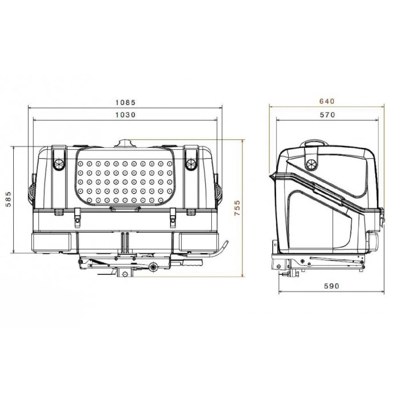 Сгъваемата система, която оборудва кутията, ще осигури достъп до задната врата / багажника на автомобила, без да отделя оборудването от теглещата кука.